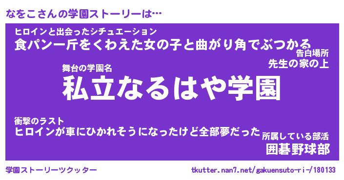 | 告白場所 先生の家の上 …「ふぃぎゅこ」 | 2月17日 06:24 |