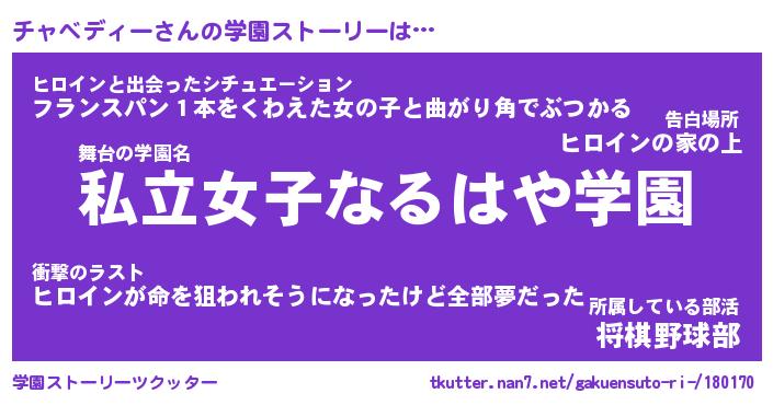 | 女子向けラノベタイトル風あだ名 | 『誰かこのチャベディーを説明してください! ~契約から始まるウェディング~』 |