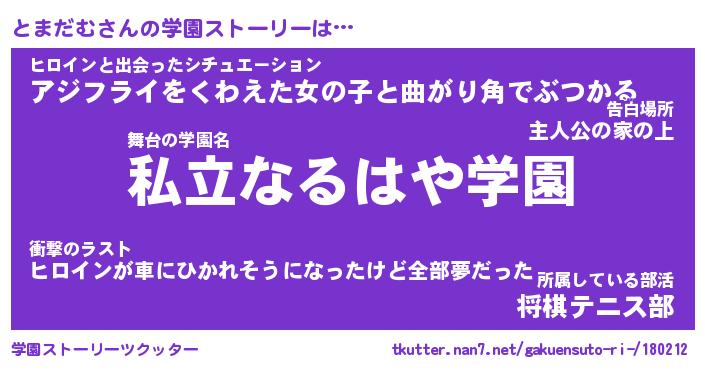 | 告白場所 先生の家の上 …「ふぃぎゅこ」 | 2月17日 06:24 |