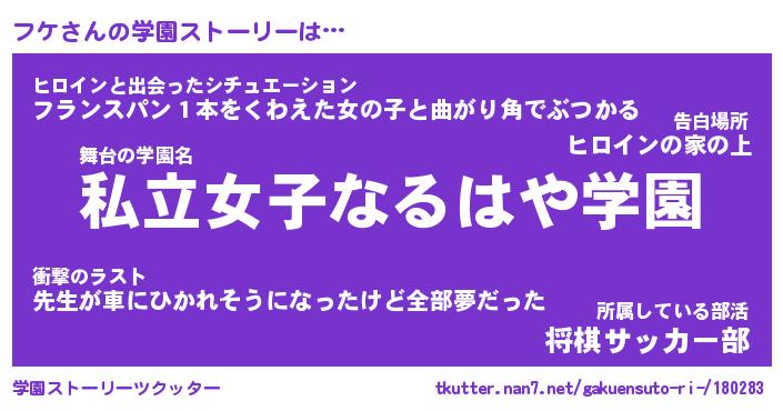 | 告白場所 先生の家の上 …「ふぃぎゅこ」 | 2月17日 06:24 |
