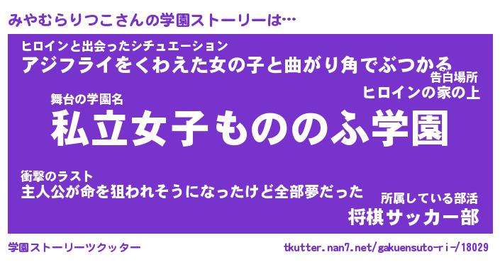 | 男性向けラノベタイトル風あだ名 | 『ミヤムラリツコアートオンライン』 |