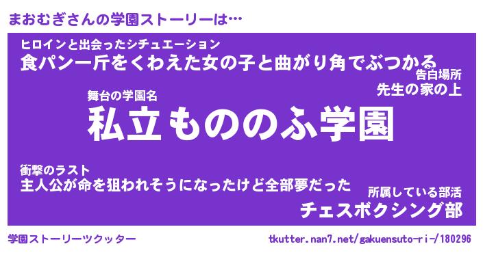 | 男性向けラノベタイトル風あだ名 | 『まおむぎの憂鬱』 |