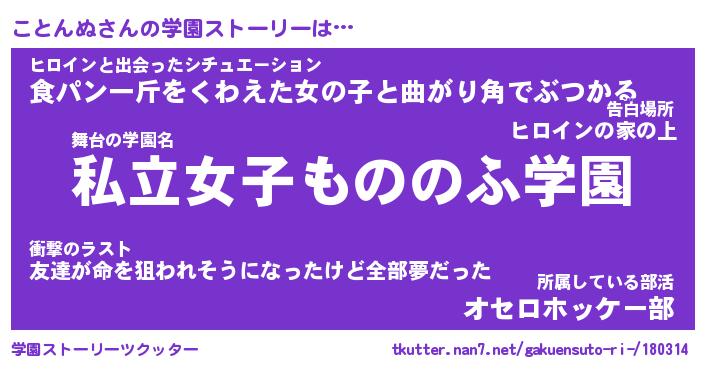 | ファンタジー風あだ名 | 『コトフェル』『エターナルコトンヌー』 |