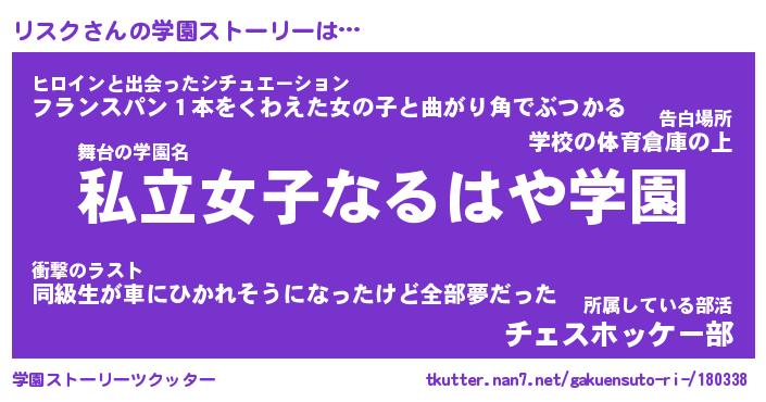 | 意味不明あだ名 | 『ペロリンリスク』『リスクフォーエバー』 |