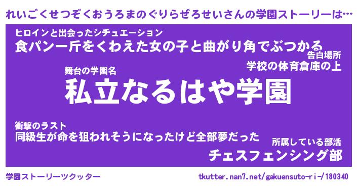 | 男性向けラノベタイトル風あだ名 | 『れいごくせつぞくおうろまのぐりらぜろせいの憂鬱』 |