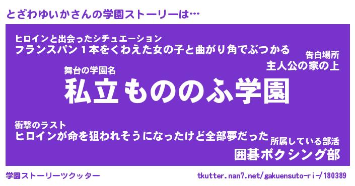 | 女子向けラノベタイトル風あだ名 | 『(仮)とざわゆいかのやんごとなき事情』 |