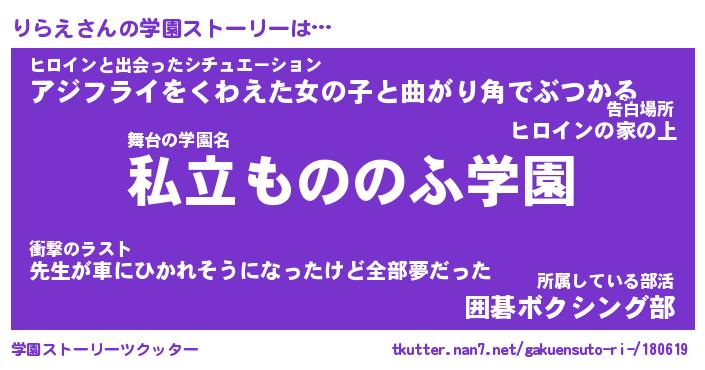 | 胡散臭い通販商品みたいなあだ名 | 『必ず成功するブレスレット…その名も「りらえ」』 |