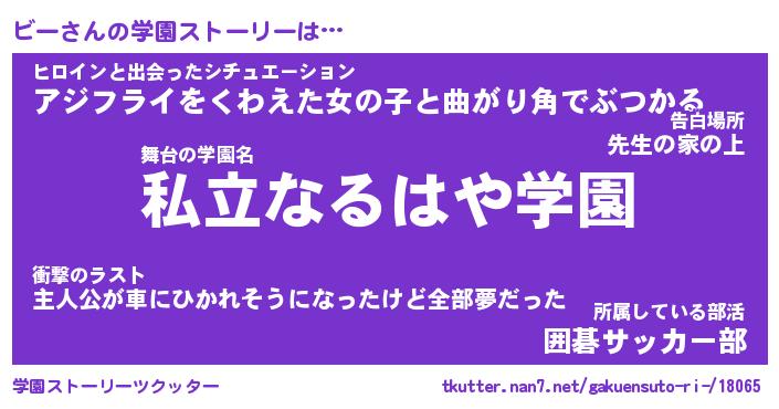 | 女子向けラノベタイトル風あだ名 | 『(仮)ビーのやんごとなき事情』 |