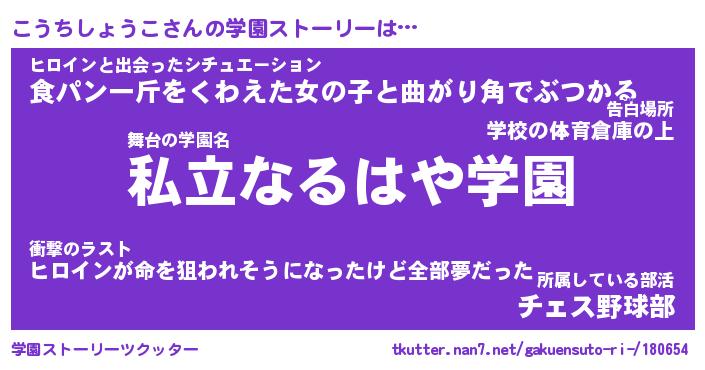 | 男性向けラノベタイトル風あだ名 | 『こうちしょうこの憂鬱』 |