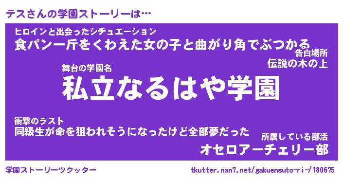 | 告白場所 先生の家の上 …「ふぃぎゅこ」 | 2月17日 06:24 |