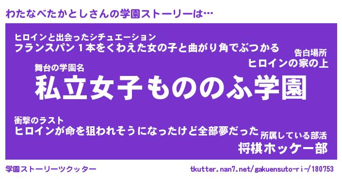 | 女子向けラノベタイトル風あだ名 | 『誰かこのわたなべたかとしを説明してください! ~契約から始まるウェディング~』 |