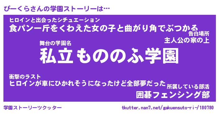 | 女子向けラノベタイトル風あだ名 | 『ぴーくら姫と円卓の騎士』 |