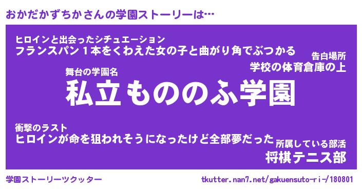 | 男性向けラノベタイトル風あだ名 | 『おかだかずちかの憂鬱』 |