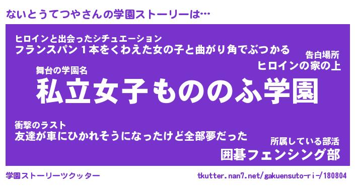 | 男性向けラノベタイトル風あだ名 | 『ナイトウテツヤアートオンライン』 |