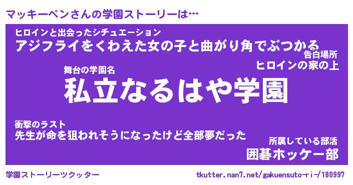 | 男性向けラノベタイトル風あだ名 | 『マッキーペンの憂鬱』 |