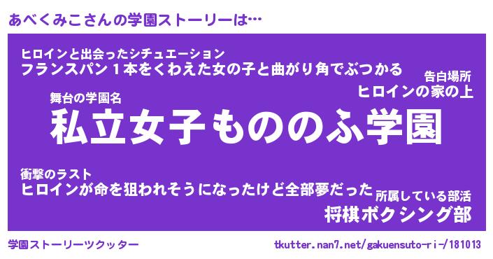 | 男性向けラノベタイトル風あだ名 | 『アベクミコアートオンライン』 |