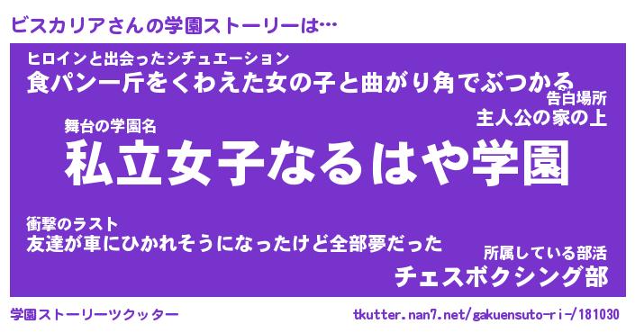 | ヒーロー風カッコイイあだ名 | 『スーパービスカリア』『暗黒騎士ビス』 |