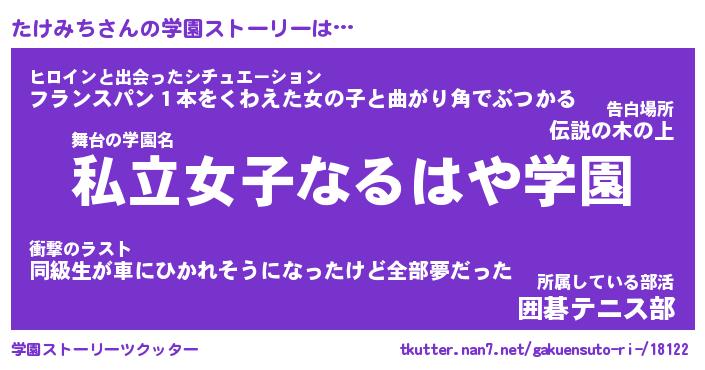 | 男性向けラノベタイトル風あだ名 | 『タケミチアートオンライン』 |
