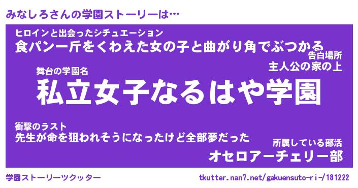 | 告白場所 先生の家の上 …「ふぃぎゅこ」 | 2月17日 06:24 |