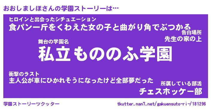 | 男性向けラノベタイトル風あだ名 | 『おおしましほの憂鬱』 |
