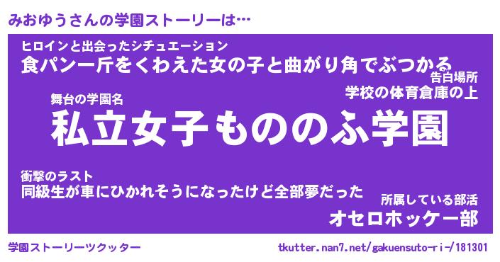 | ファンタジー風あだ名 | 『ミオフェル』『エターナルミオユウー』 |