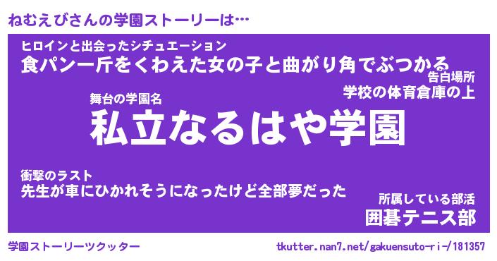 | ポケモン風あだ名 | 『ネムチュウ』『ネムエダネ』 |