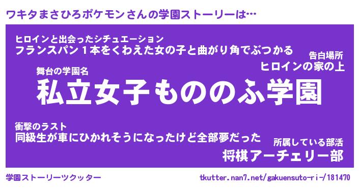 | 女子向けラノベタイトル風あだ名 | 『ワキタまさひろポケモン姫と円卓の騎士』 |
