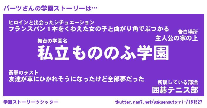 | 男性向けラノベタイトル風あだ名 | 『パーツの憂鬱』 |