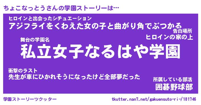 | 告白場所 先生の家の上 …「ふぃぎゅこ」 | 2月17日 06:24 |