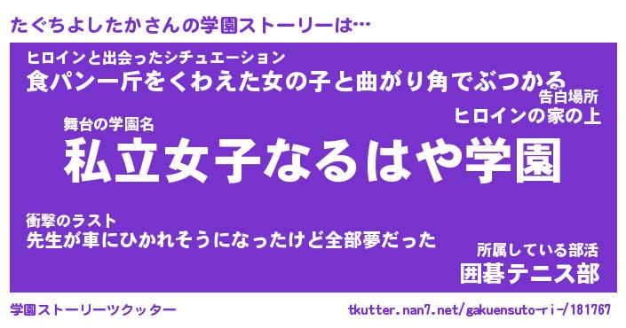 | 女子向けラノベタイトル風あだ名 | 『たぐちよしたか姫と円卓の騎士』 |