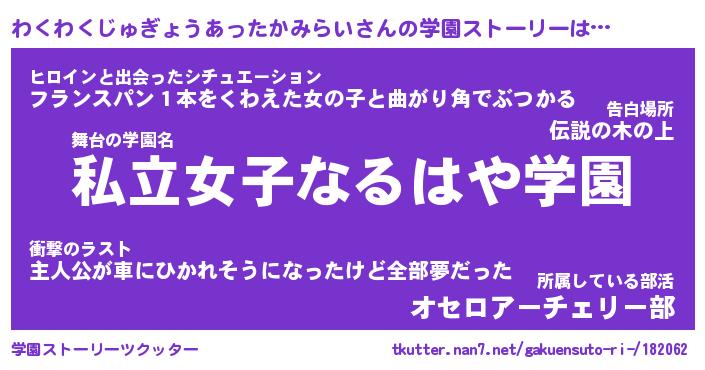 | 番長 | わくわくじゅぎょうあったかみらい、またの名を・・・!『眠たげなわくわくじゅぎょうあったかみらいっち』 |