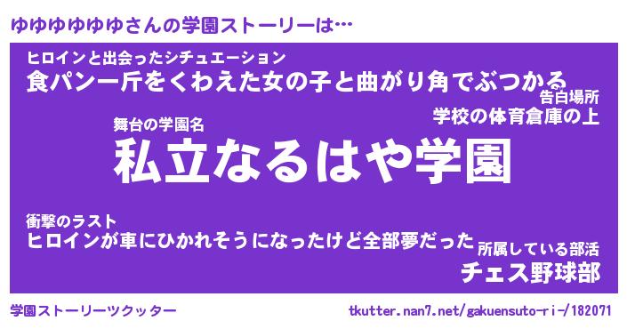 | 女子向けラノベタイトル風あだ名 | 『(仮)ゆゆゆゆゆゆのやんごとなき事情』 |