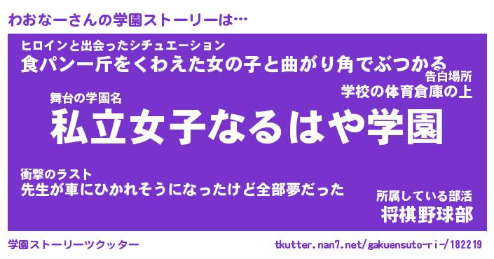 | 告白場所 先生の家の上 …「ふぃぎゅこ」 | 2月17日 06:24 |