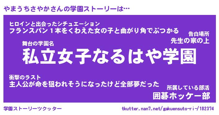 | 伝説のあだ名 | 『不死鳥のスナイパーやまうちさやか』 |