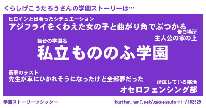 | 女子向けラノベタイトル風あだ名 | 『(仮)くらしげこうたろうのやんごとなき事情』 |