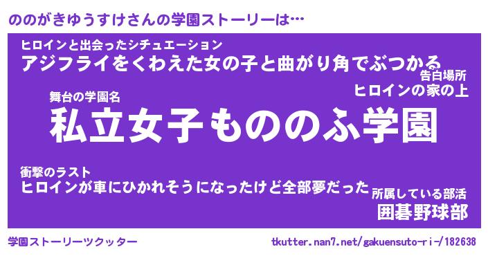 | 男性向けラノベタイトル風あだ名 | 『ノノガキユウスケアートオンライン』 |
