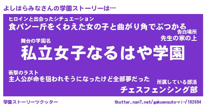 | 伝説のあだ名 | 『封印されしスナイパーよしはらみな』 |