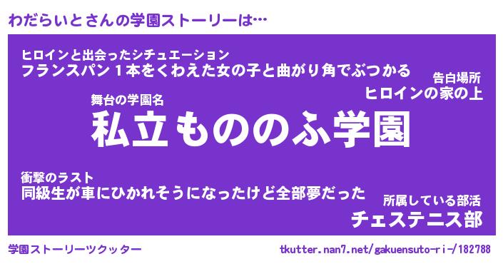 | 男性向けラノベタイトル風あだ名 | 『わだらいとの憂鬱』 |