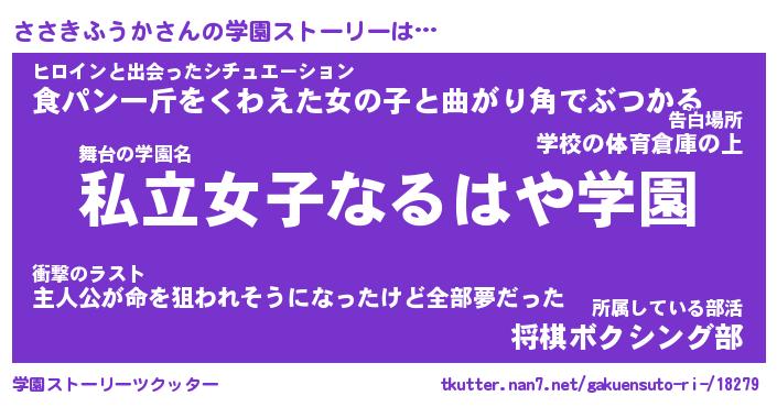 | ヒーロー風カッコイイあだ名 | 『スーパーササキフウカ』『黄金騎士ササ』 |