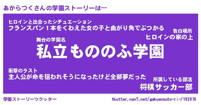 | 男性向けラノベタイトル風あだ名 | 『あからつくの憂鬱』 |