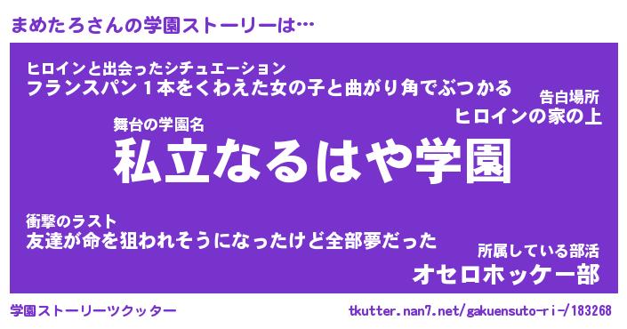 | ヒーロー風カッコイイあだ名 | 『スーパーマメタロ』『幻影騎士マメ』 |