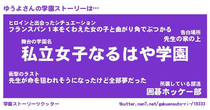 | 告白場所 先生の家の上 …「ふぃぎゅこ」 | 2月17日 06:24 |