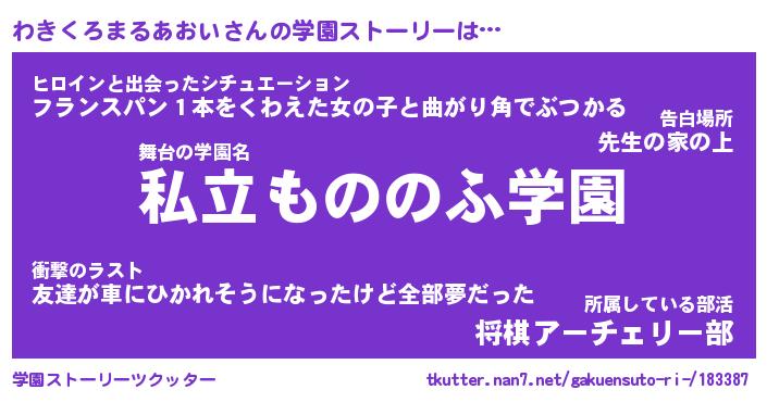 | 男性向けラノベタイトル風あだ名 | 『わきくろまるあおいの憂鬱』 |
