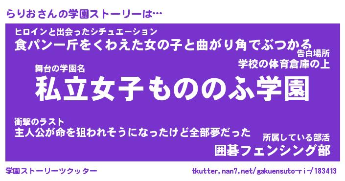| 意味不明あだ名 | 『ペロリンらりお』『らりおフォーエバー』 |