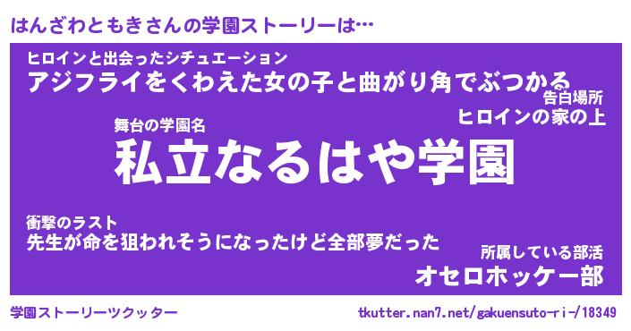 | 男性向けラノベタイトル風あだ名 | 『はんざわともきの憂鬱』 |