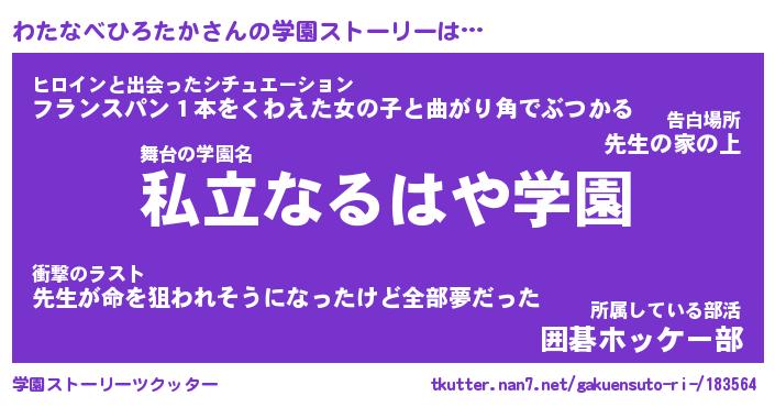| 伝説のあだ名 | 『伝説のスナイパーわたなべひろたか』 |