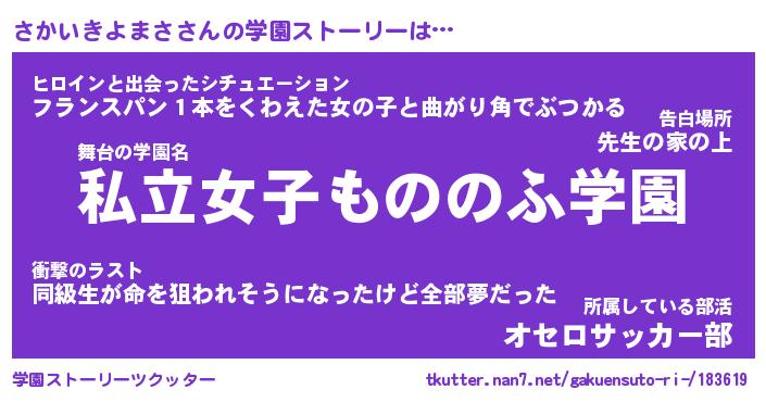 | 男性向けラノベタイトル風あだ名 | 『サカイキヨマサアートオンライン』 |