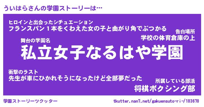 | 女子向けラノベタイトル風あだ名 | 『ういはら姫と円卓の騎士』 |