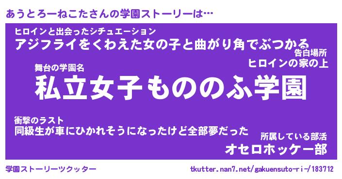 | 意味不明あだ名 | 『ペロリンあうとろーねこた』 |