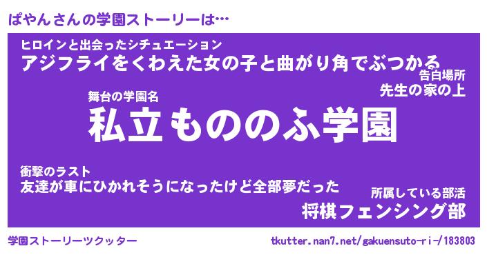 | 男性向けラノベタイトル風あだ名 | 『ぱやんの憂鬱』 |